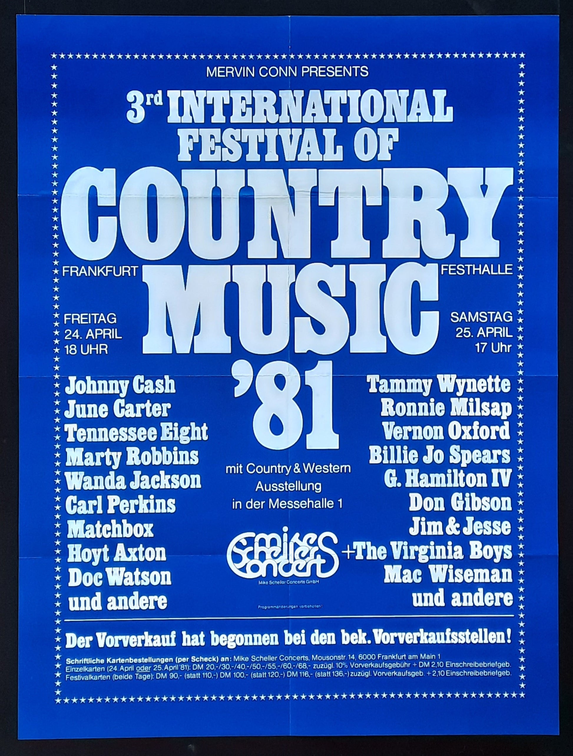 COUNTRY MUSIC FESTIVAL Original Concert Poster 1981 April 24, 1981 Frankfurt Germany CASH CARTER PERKINS