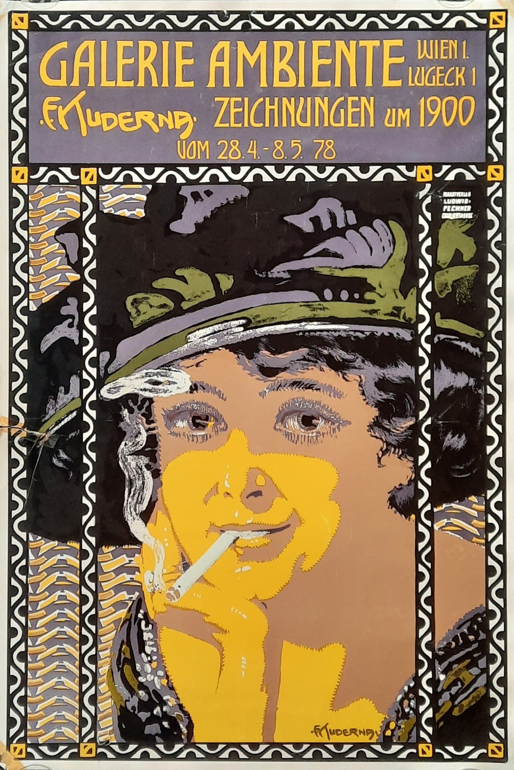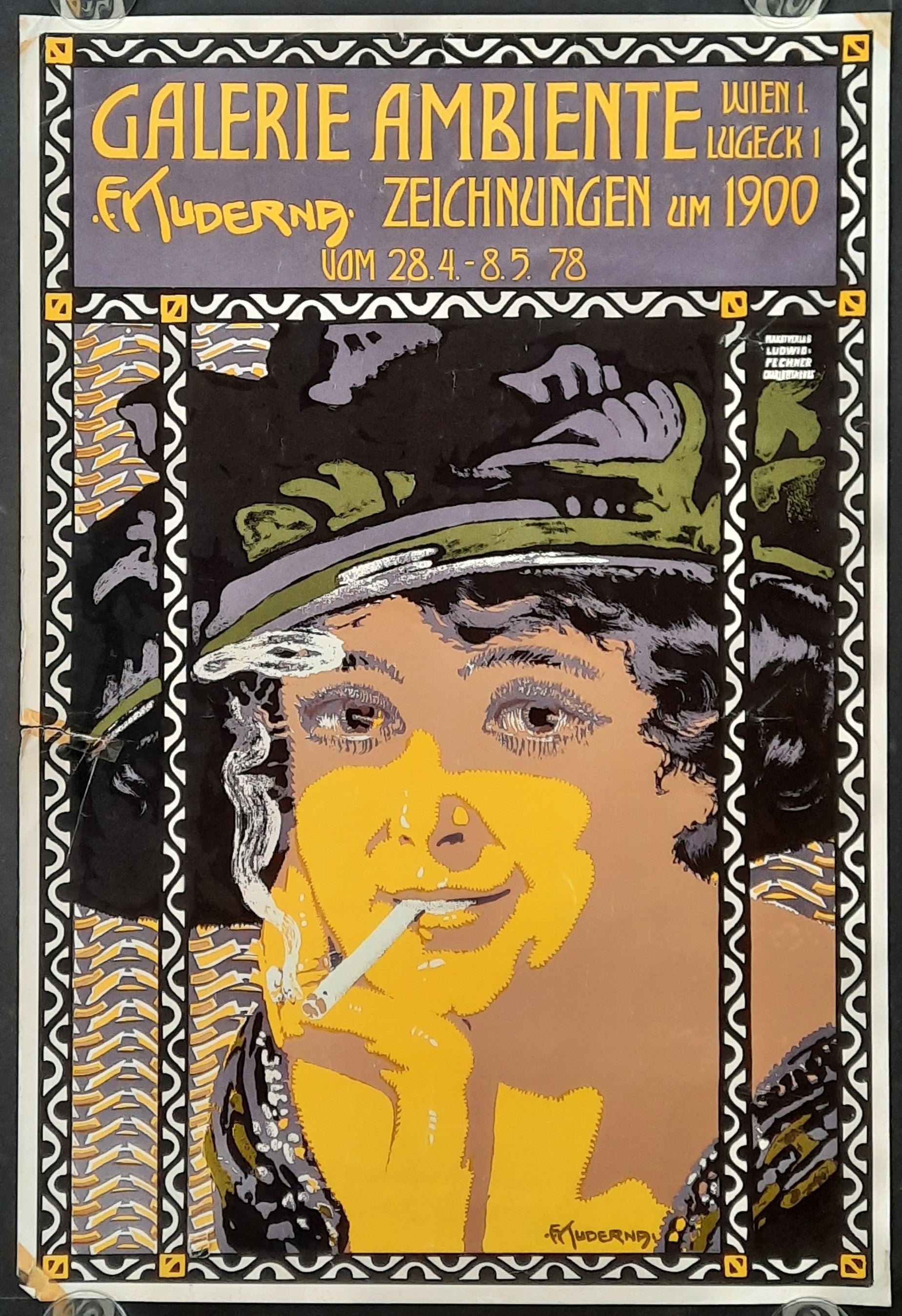 GALERIE AMBIENTE Original Exhibition Poster 1978 Jugendstil Vienna Austria F. KUNDERA